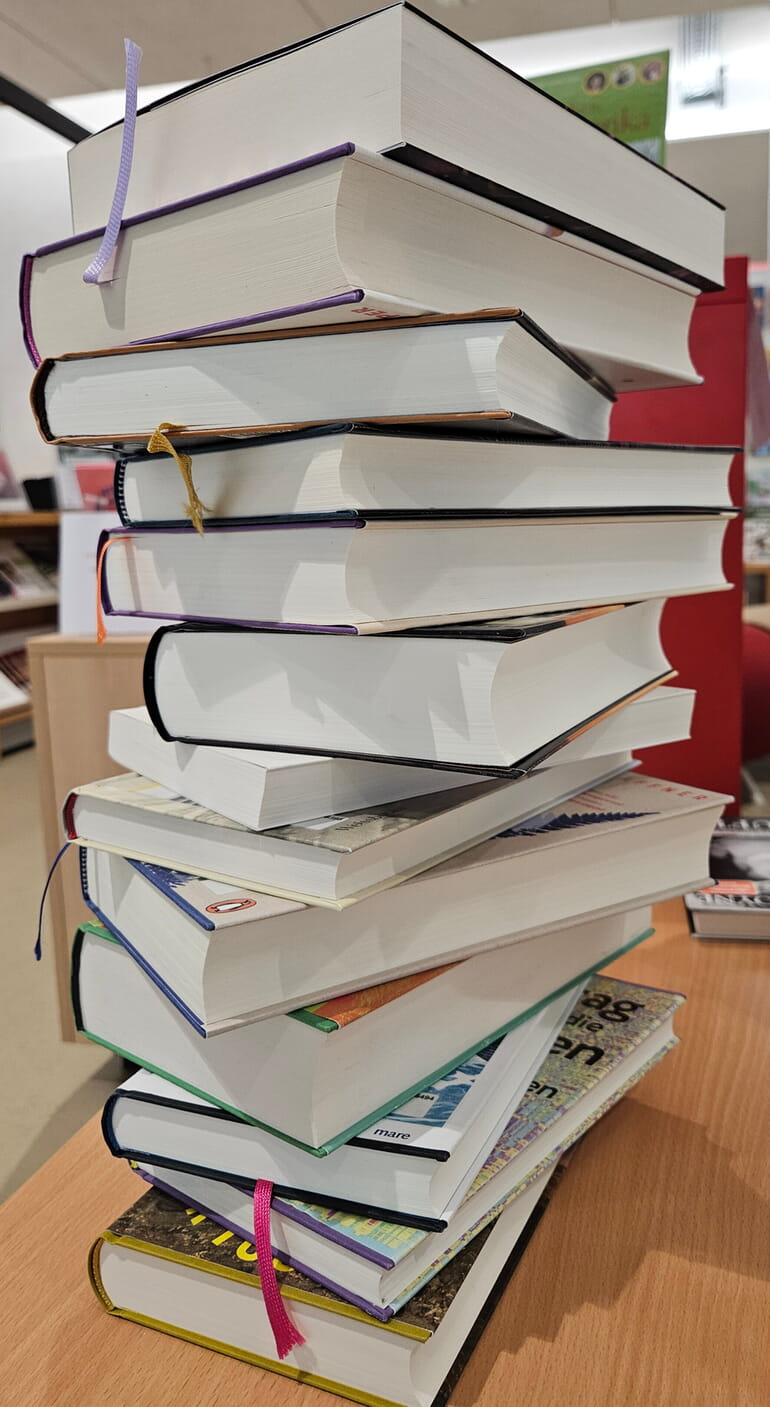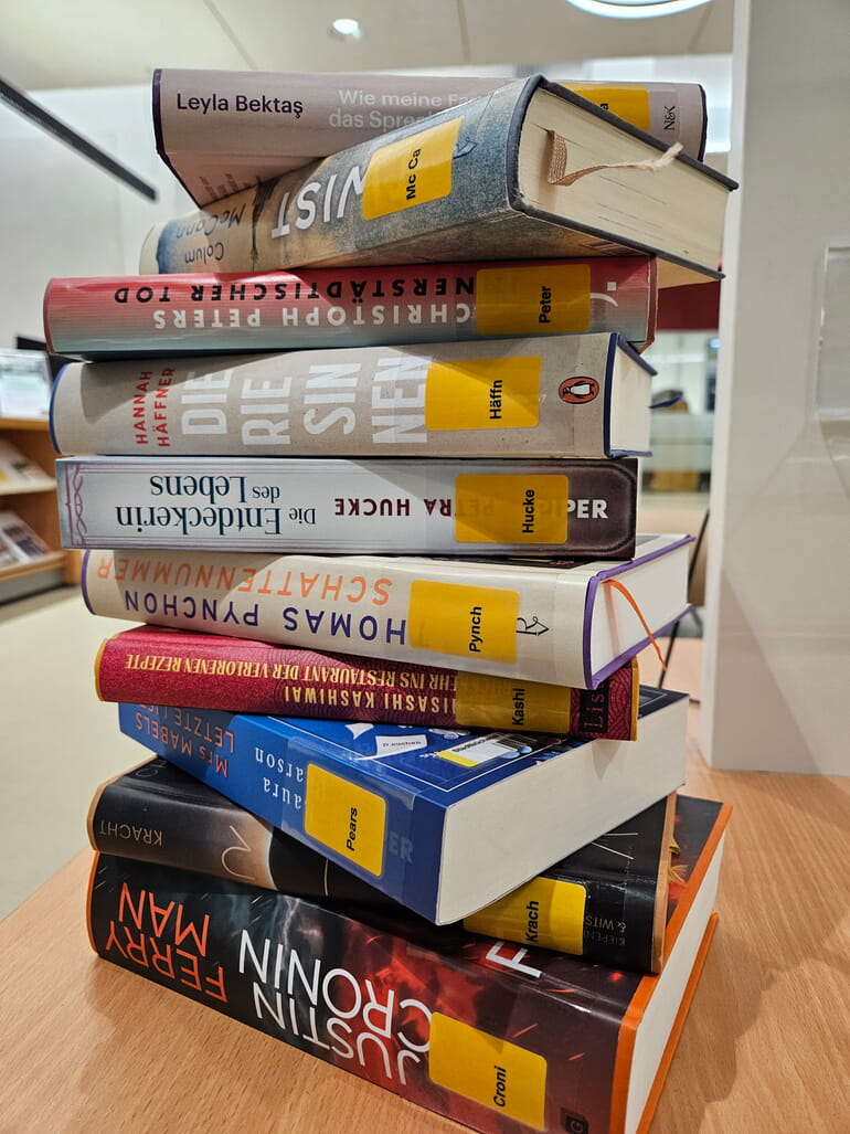 Stapelweise neue Bücher am Samtag, den 18. April 2026 ab 19.30 Uhr in der Stadtbücherei Lauffen